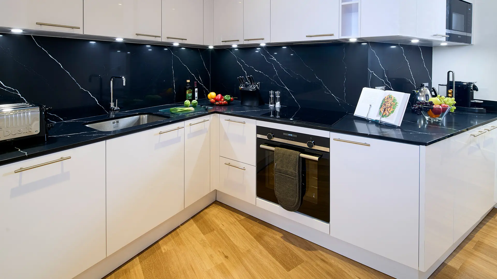 • Hob, oven, microwave, fridge