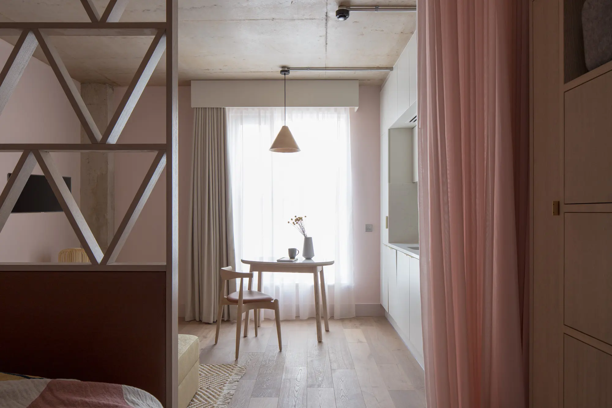 Each apartment is carefully crafted to meet modern professional needs, featuring a fully equipped kitchenette, a comfortable living and dining area, high-speed Wi-Fi, a smart TV, a dedicated workspace, premium bedding, and a sleek bathroom with rainfall shower. On-site amenities enhance convenience and wellbeing, including a lively café-bar, communal social spaces, laundry facilities, and 24-hour reception and concierge services.