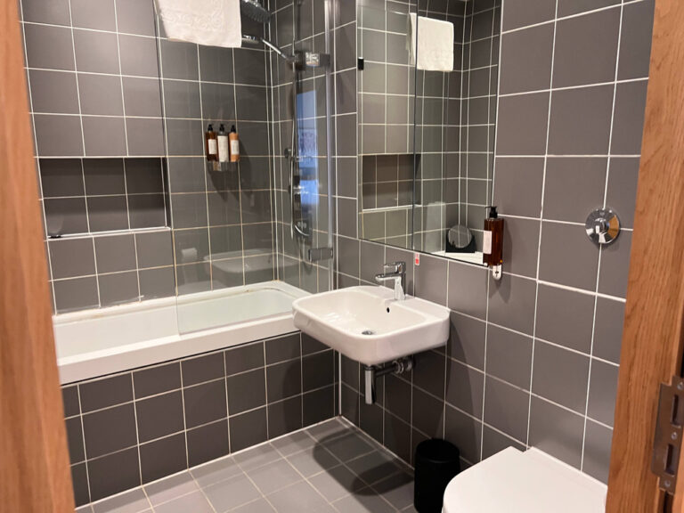 There’s decent wardrobe space in every apartment with a safe and hangers. You will also find an iron and ironing board. Bathrooms are tiled with fluffy towels on arrival, showers over bathtubs or standalone shower cubicles. A little vanity mirror is also placed in here for your convenience. 100% recycled and refillable premium toiletries add a nice touch.